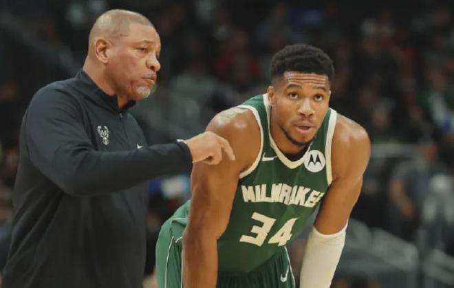 字母哥也不能說不努力,他沒有擺爛,賽季前4場(chǎng)常規(guī)賽里場(chǎng)均36.2分14籃板7助攻1.3封蓋0.8搶斷,拿到新賽季第一周的東部周最佳球員獎(jiǎng)。
