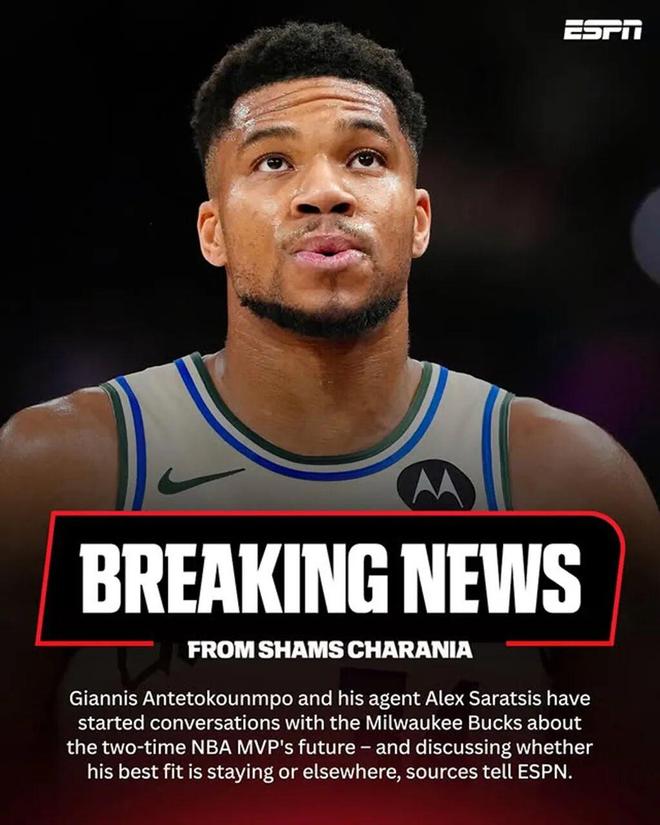 另一邊,字母哥被曝決定離開雄鹿隊,目前正在積極尋找下家。