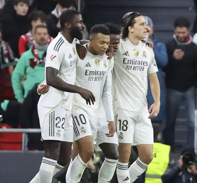 第42分鐘皇馬踢出流暢的配合,姆巴佩頭球助攻卡馬文加建功,皇馬帶著2-0的比分進入中場休息。下半場回來,畢爾巴鄂競技利用遠射威脅皇馬的城門,庫爾圖瓦保持注意力,力保城門不失。第59分鐘卡雷拉斯將皮球傳給姆巴佩,后者沒有太多的助跑,直接拔腿怒射,皮球猶如炮彈一般飛入了網(wǎng)窩,世界波梅開二度,皇馬取得了3-0的領(lǐng)先,最終把這個比分保持到最后。