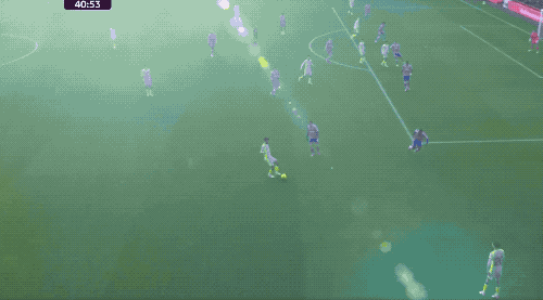 第41分鐘,曼城看似在前場漫不經(jīng)心倒腳,努內(nèi)斯突然45度傳中,哈蘭德高高躍起,頭槌破門。