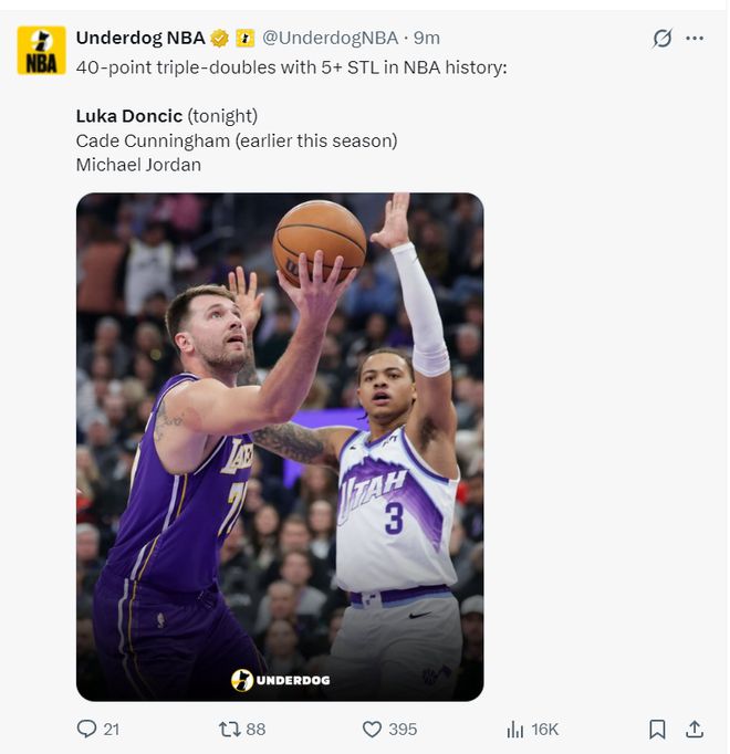 4.NBA歷史上拿到40+三雙+5搶斷的只有東契奇、坎寧安、喬丹;