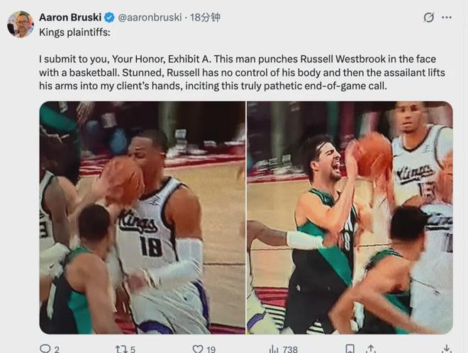 NBC Sports記者Aaron Bruski對此發(fā)推寫道:阿夫迪亞用籃球猛擊威少面部,后者因此完全失去對身體的控制;此時阿夫迪亞又故意將手臂抬起接觸威少手掌,從而引發(fā)了這場極其荒謬的終場判罰。