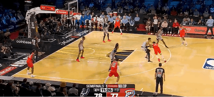 換邊后第三節(jié)開戰(zhàn),科內(nèi)特先上籃幫馬刺打破僵局,切特馬上回敬兩分回應(yīng)。