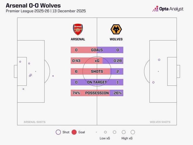 在這場(chǎng)看似實(shí)力差距巨大的比賽中,阿森納上半場(chǎng)6次射門(mén)卻無(wú)一命中目標(biāo),預(yù)期進(jìn)球數(shù)僅為0.43,根據(jù)Opta的統(tǒng)計(jì),這同時(shí)也是槍手本賽季至今在英超聯(lián)賽中首次遭遇上半場(chǎng)0射正的情況。